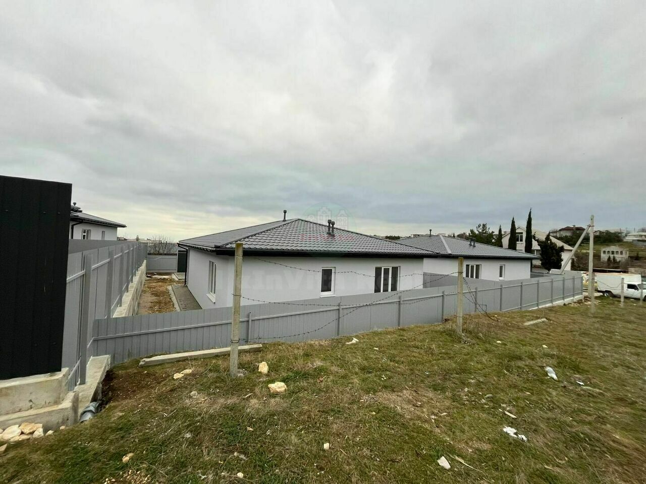 Участок огорожен забором и установлены ворота. Залита парковка для вашего автомобиля, отмостка и орожка к дому вымощена тротуарной плиткой. До остановок общественного транспорта менее 80-100 метров и столько же до Монастырского шоссе. До монастыря у пляжа "Яшмовый" 500 метров. Подходит под семейную ипотеку.