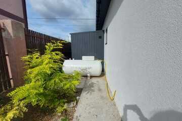 Есть все коммуникации: вода, септик с переливом, электричество 3 фазы 15 кВт, газгольдер(отопление-двухконтурный газовый котел Baxi, тёплый водяной пол во всех комнатах, а в гостиной добавлен радиатор.