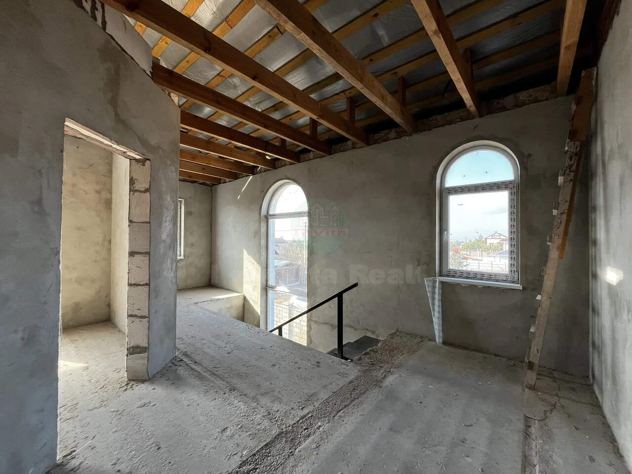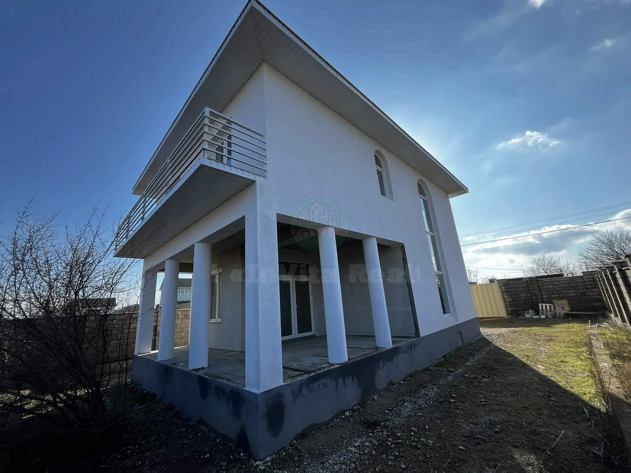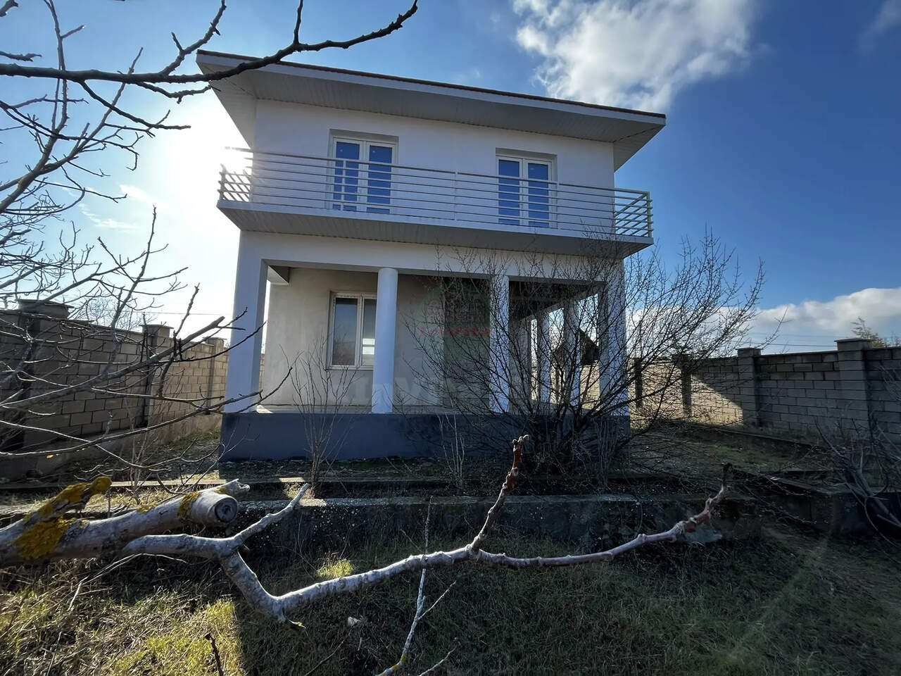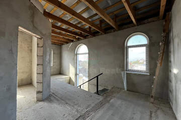 Стены из ракушечника, бетонный армопояс 450мм. Крыша на стропильной системе 200х70 мм, мягкая черепица с утеплением 200 мм. Фасад утеплен и отделан короедом. Качественные большие атермальные окна. Внутри стены оштукатурены. Во дворе хозпостройка, которую можно оборудовать под котельную/бойлерную. Высота потолков 3,3 метра. В доме есть великолепная терраса площадью 25 кв.м.Со всех спален есть балконы. Электричество и вода есть.